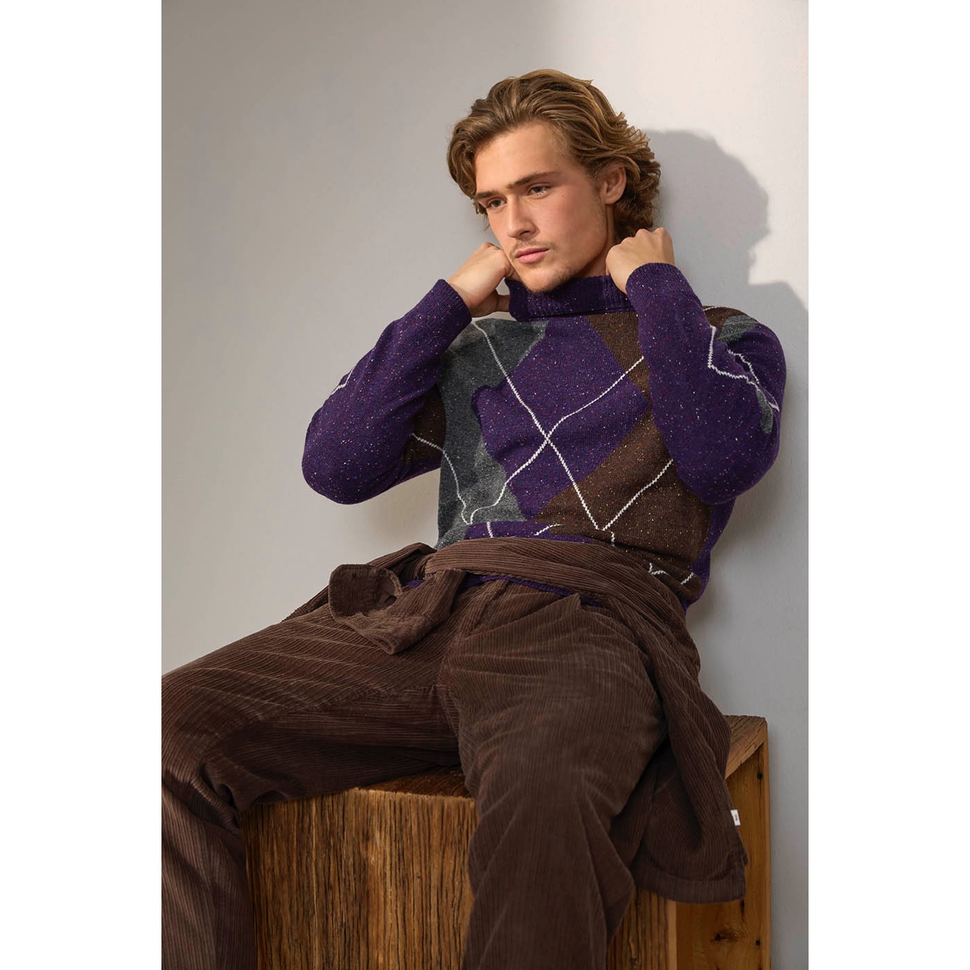 Auch die Menswear zelebriert Cord als Key-Material: von feinen bis breiten Rippen, von Workwear-inspirierten Sets bis zu modernen Preppy-Looks. Natürliche Materialien, markante Strickstrukturen und moderne Denim-Updates runden die Kollektion ab. Farblich dominieren Chocolate und Naturtöne, akzentuiert durch Plum und Silbergrau.