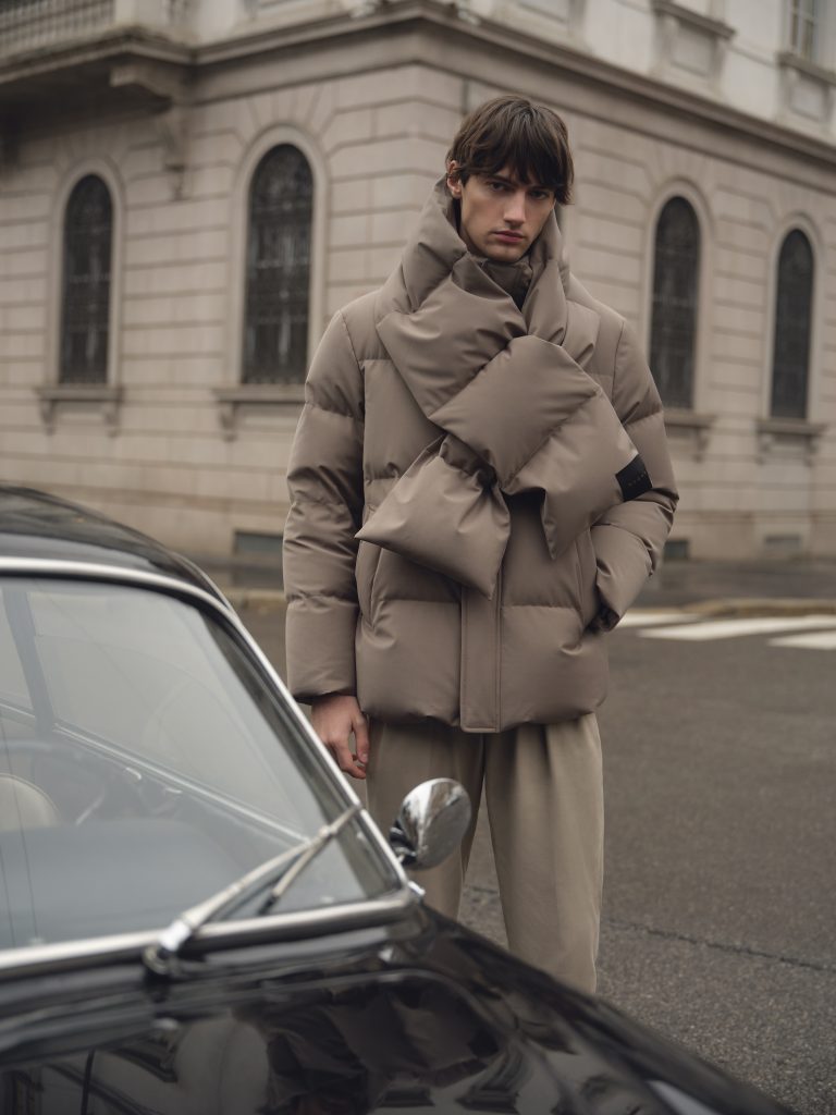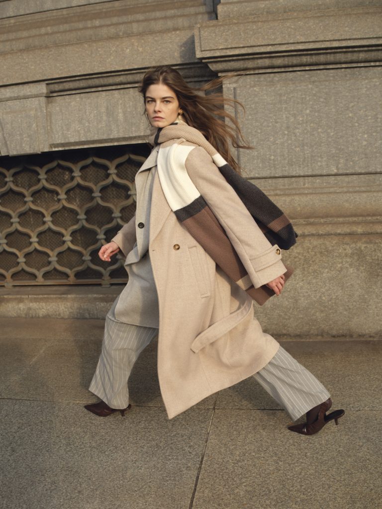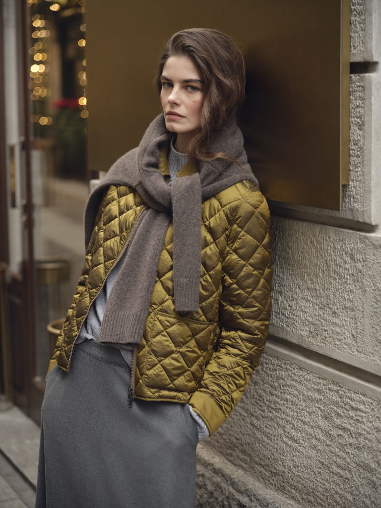 Die Womenswear greift Mailands elegante Zurückhaltung in warmen Erdtönen, Sand, Salbei, Greige und tiefem Khaki auf – ergänzt durch Camel, Schwarz-Weiß-Kontraste und ein intensives Grün. Edle Materialien wie Bouclé, Doubleface, Boiled Wool und Fake Fur definieren die Saison.