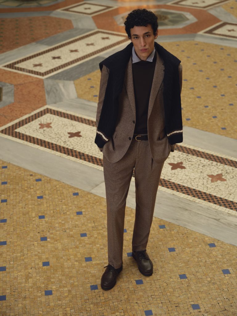 Die Menswear kombiniert Navy, Off-White, Camel, Braun und neue Grüntöne mit Akzenten wie Grape oder Winter-Pistazie. Die Linien Main, Blue und Gold interpretieren das Leitmotiv jeweils klassisch, technisch oder modisch-progressiv.