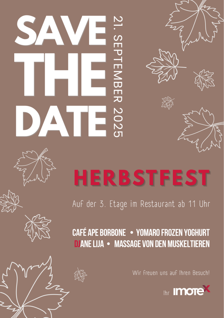Imotex lädt am 21. September 2025 zum großen Herbstfest nach Neuss ein.