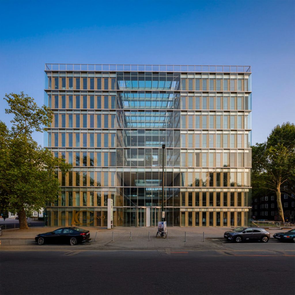 Nachhaltige Architektur trifft auf Modestandort: Der modernisierte Wolkenbügel im Medienhafen ist jetzt Heimat des größten Hugo Boss Showrooms Europas.
